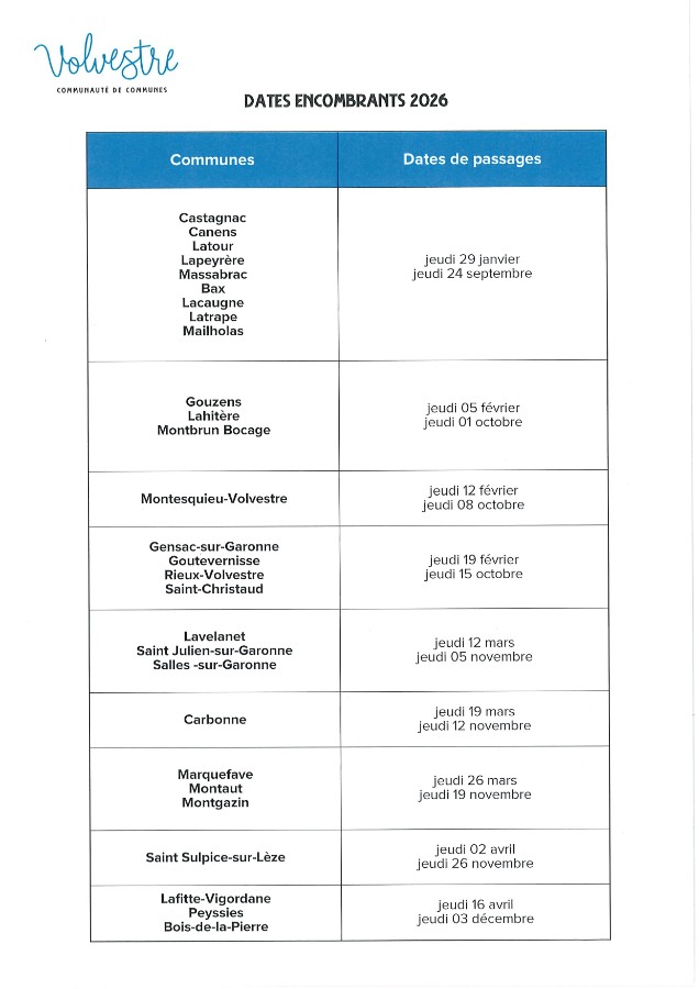 Ramassage des ordures (modifications des dates de collectes) et collecte des encombrants 2025